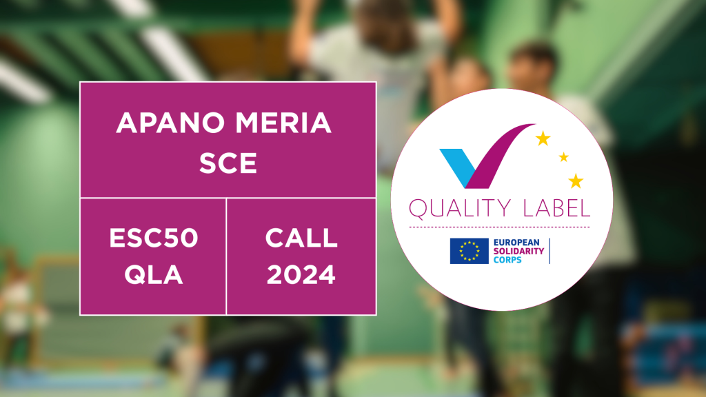 Following the positive outcome of our application (Call 2024), Apano Meria SCE has been awarded the European Solidarity Corps Quality Label, which confirms our commitment to implementing quality volunteering projects and enables us to host and support new volunteers within the framework of the Program.